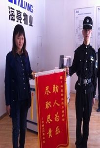 驻内蒙古海亮物业服务有限公司(六项目部呼市海亮广场)的保安队自上驻勤单位以来,全体保安员在做好勤务工作的同时,帮助业主搬运家具等,热情为业主提供力所能及的帮助,增进了和业主的感情,受到业主的一致好评,业主为表达谢意回赠物品,均被保安员们谢绝。为此业主送上一面锦旗表达谢意。