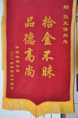 2014年4月11日驻北京康瑞普冶金设备有限公司(二项目部北京企发)保安队的队员张先保在北京康瑞普冶金设备有限公司北门附件巡逻时,拾到申通快速员工林杰的钱包,内有身份证、银行卡及现金240余元财物。张先保同志马上将钱包交给保安队长宋艳超,队长及时将钱包交还给林杰本人。失主林杰对张先保同志拾金不昧的行为表示非常感谢,给张先保同志送上一面锦旗。北京康瑞普冶金设备有限公司物业部号召物业部及保安队的全体员工学习张先保拾金不昧的精神,并给公司送来一封表扬信。
