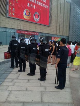 万达保安队进行反恐防暴和消防应急疏散实战演练