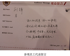 通过这次参观活动,大家纷纷表示非常震撼,对中国人民志愿军抗美援朝出国作战有了一个更为深入、全面、系统的认识。“特别感动、永远铭记、捍卫和平、矢志奋斗”等是大家在参观中说的最多的几句话。参观结束后,大家纷纷寄语祖国:祝愿我们的祖国更加繁荣昌盛,祝愿人民生活更加幸福美满,祝愿中华民族伟大复兴的中国梦早日实现!