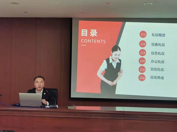会议由刘洪泽副总经理主持,总经办主任冯涛首先宣读了《总部员工形象整顿工作方案》,对本次形象整顿活动的时间阶段、工作内容和工作要求进行了重点部署。运营管理部经理徐文伟进行礼仪知识授课讲解,他对此次授课进行了精心准备,理论联系实际,针对总部员工形象存在的普遍问题进行了深入浅出地讲解,授课内容全面、契合实际、形象生动,既有语言描述又有图片展示,既有理论授课又紧密结合实际。