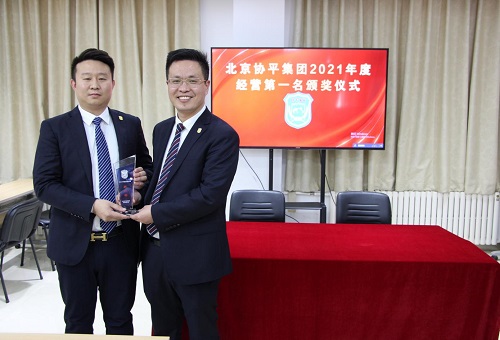 张铭智颁发2021年经营第一名奖杯