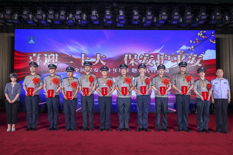 2022年7月24日下午,北京市公安局治安管理总队、北京保安协会等单位在北京隆重举办了以“喜迎二十大、保安护平安”为主题的“7.24”全国保安行业主题宣传日系列活动。中国保安协会第一副会长刘绍武,公安部治安管理局二级巡视员、中国保安协会秘书长吴笑颜,市局治安管理总队政委刘东,市局治安管理总队副总队长、北京保安协会会长张国海等领导,公安机关治安部门主管领导、北京保安协会有关领导、获奖单位和个人代表、保安员代表等参加了本次活动。公司李建国总经理、2022年北京冬奥冬残会安保先进个人代表李洪明同志作为公司代表,受邀参加了主题日的系列活动。