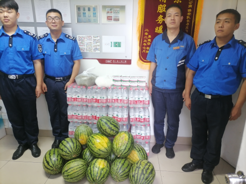 进入盛夏,骄阳似火,酷暑难耐,为关心关爱一线保安员工,近日,公司工会集中采购了矿泉水、西瓜、防暑药品等慰问品,北京区域公司及各部经理分组到各驻勤班队走访慰问,在炎炎夏日为坚守在工作一线的保安员工送去了清凉,使保安员工深切感受到了工会组织的关怀,感受到了协平大家庭的温暖,凝心聚力,提振士气,全身心的投入到客户服务和夏季治安整治工作中去。