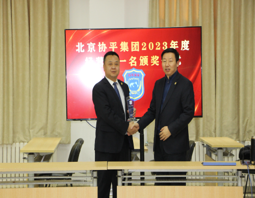 刘志勇董事长为2023年度经营发展第一名的区域公司颁发奖杯