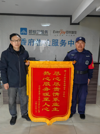 河南区域公司驻中梁物业华西区域卫辉中梁书香府秩序维护员申金成,在门岗执勤期间,认真落实客户“三个服务,七个要求”工作标准,热情服务小区业主,在职责范围内尽可能地为业主排忧解难,提供帮助,工作中他多次捡到装有现金、证卡的钱包及手机等贵重物品,主动上交或是想方设法寻找失主予以归还,在社区和日常生活中,他甚至记住了部分业主的姓名和具体门牌号,多次帮助走失的孩子找到家人,搀扶护送喝多的业主返回家中,赢得了业主的尊敬和称赞,近日,有业主向物业送来锦旗对申金成表示感谢。