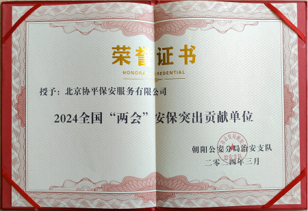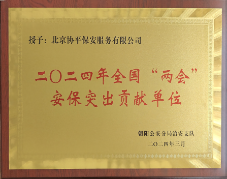 公司被授予“2024年全国两会安保突出贡献单位”荣誉称号