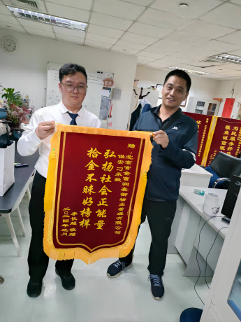 2024年5月12日上午9时50分,北京二部驻联通中心保安员石立明在运维楼巡逻时捡到一部手机,其间,失主打来电 话寻找,石立明接到电话后热心安抚失主情绪并告诉其详细位置,失主赶到后,经核实确认将手机归还失主。失主高度称赞了小石拾金不昧的高尚品质,表示将于近日专程送来锦旗表示感谢。