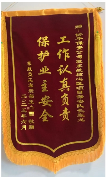 近日,北京区域各部接连收到业主和群众送来的锦旗和感谢信,对保安员在执勤中忠于职守、热情服务,尽职尽责、排忧解难,所展现出的职业素养和敬业精神给予高度评价,称赞他们是“值得信赖的好保安”。