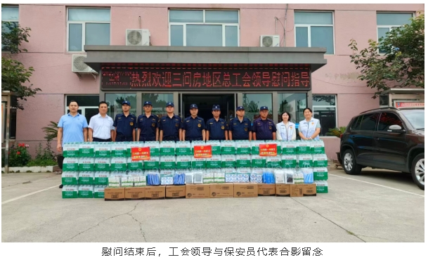 2025年7 月 8 日下午,朝阳区三间房地区总工会领导一行莅临我公司慰问坚守工作一线的保安员工,在炎炎夏日为基层保安员送来防暑降温慰问品和工会领导的深切关怀。