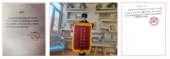 2026年1月29日,在怡海达丰物业召开的年度总结表彰会上,公司驻怡海花园项目保安队长兰福龙、保安员王锦程、潘国亮被客户单位授予“服务口碑”荣誉称号,受到客户表彰奖励,这既是客户单位对我公司各项工作的高度认可,也是新的一年对我们持续提升服务品质、践行责任担当的鞭策与期望。近日,该项目保安员在执勤中多次捡到业主遗失的财物,保安员梁家乐、王焱在执勤中捡到一块儿童电话手表在第一时间联系了孩子家长认领;保安员潘国亮、孙洪朋在巡逻时捡到业主遗失的大疆牌运动相机,通过物业联系到失主,迅速完璧归赵;保安员王焱和刘峰在富润园3号楼地桩附近捡到一部价值7000余元的苹果手机,原地等候失主,直至失主打来电话寻找,经核实确认后归还失主,上述保安员拾金不昧的高尚品德受到了业主和客户单位领导的一致好评,失主先后向物业送来表扬信、锦旗向保安队表示感谢。