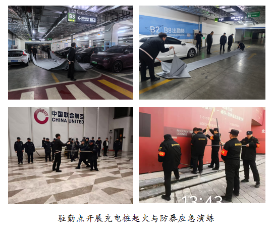 为有效应对和处置各类突发事件,各驻勤班队有针对性地组织开展消防救援、反恐防暴等应急处突实战演练,演练紧扣安保工作实际场景,模拟突发事件处置流程,组织安保人员熟练掌握应急器材使用、现场秩序维护、人员疏散引导、初期火情处置等实操技能,进一步提升队伍快速反应、协同作战、高效处置能力。