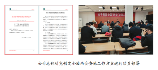 公司始终将全国两会安保工作作为重大政治任务,第一时间召开专题会议,传达公安机关监管单位和行业协会关于两会安保工作的部署要求,结合公司工作实际 ,研究制定了《2026年全国两会安全保卫工作方案》,成立了由李建国总经理任组长,分管副总经理任副组长,各部门经理、各区域公司总经理、北京区域公司各项目部经理为成员的全国两会安保工作领导小组,对公司两会安保工作进行组织指挥。