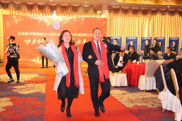 2020年1月14日上午,大红门国际会展中心兰亭阁宴会厅悬灯结彩、红飞翠舞,公司领导班子成员和来自全国各地的400余名协平员工欢聚一堂,隆重举行协平公司成立十五周年庆典暨2019年总结表彰大会。中国保安协会郝志忠主任,北京市公安局治安管理总队保安管理支队赵东春副支队长,北京保安协会初卫东副秘书长,北京保安行业妇联主席、北京保安协会交流部樊京宏,甲方客户代表和特邀嘉宾等出席了大会。