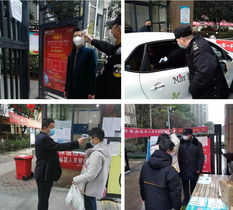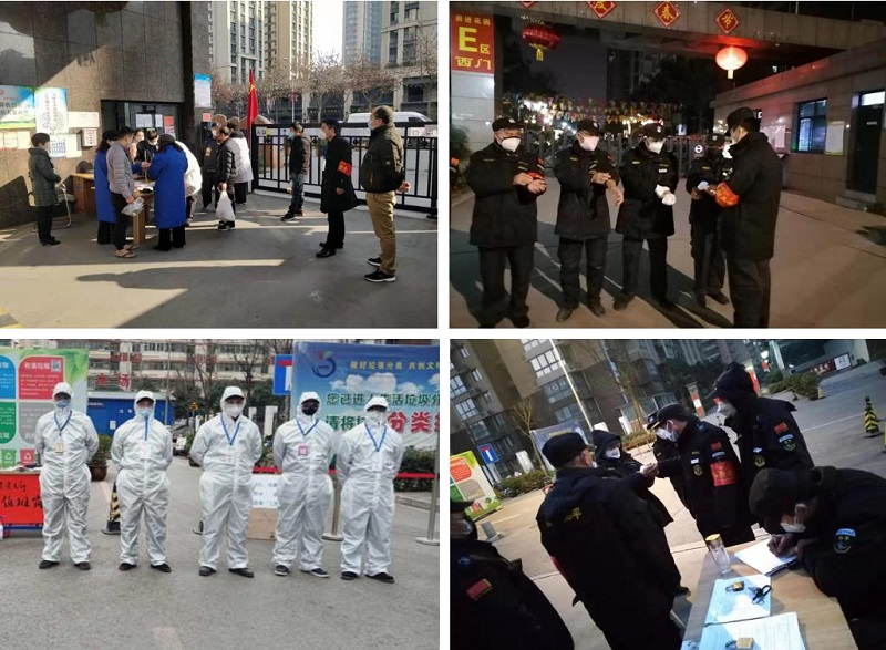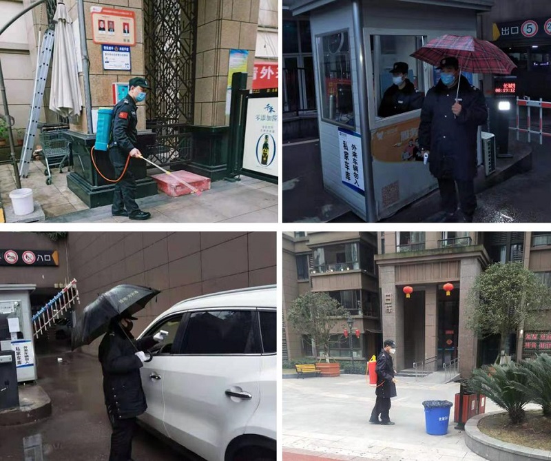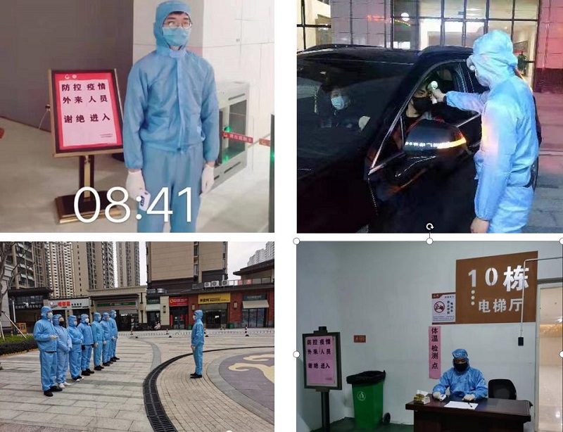 江西省紧临湖北省,防疫形势和防疫措施尤为严峻和严格。为确保服务单位和保安员工的安全防疫,江西区域公司从春节前就开始积极行动,根据当地政府要求,全力配合各个甲方单位开展防疫工作。每天上岗前,所有员工都要按要求配戴好防控用具,在消毒后方可上岗。一方面做好出入口的管控,一方面安排专人每天对甲方单位的大堂、楼道、垃圾桶、电梯等重点区域进行反复消毒。区域公司根据各个项目的疫情情况,分别采取不同的防护级别和防护措施。在无确诊病例的单位,要求员工每天必须佩戴口罩上岗,根据情况配备相应防护用品,勤洗手勤消毒,做好上岗前和下岗后的消毒工作。在已经有确诊病例的小区,精心做好员工思想工作,稳定员工情绪,树立员工的责任感和荣誉感,班队长和党员同志带头坚守岗位,严格做好日常消毒和全套防护工作,严防死守每一个出入口,坚决防止疫情扩散,全力守护客户单位和群众的安全。