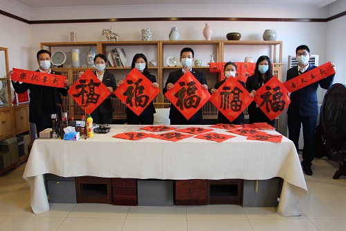 丑旧寅新宏图展,牛归虎跃春意浓,2022年1月24下午至25日上午,公司工会专门邀请教育培训部阴进波经理为京内外各部门、各区域公司的员工们开展送春联和福字活动,把虎年新春的祝福通过一幅幅春联和一张张福字传送出去。