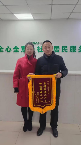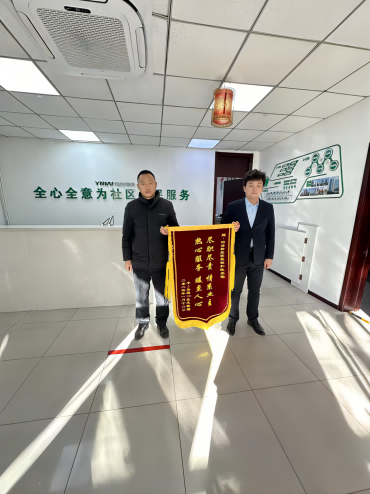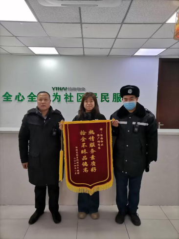 2024年1月17日成都天府美岸小区业主杜女士向物业送来锦旗。经了解,1月15日下午,川渝区域公司驻该小区秩序维护员卢秀花执勤时,在岗位附近捡到一条黄金项链(价值10余万元)及时报告秩序部主管并联系管家寻找失主,经多方寻找联系上业主杜女士归还失物,卢秀花同志拾金不昧的精神受到了失主及客户领导的称赞。