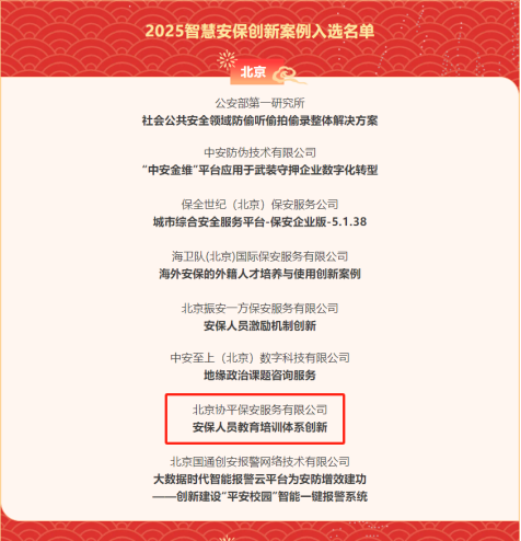 此次入选不仅是行业协会对我公司培训体系创新实践的权威认可,更彰显了行业对人才培育与科技融合发展的高度重视。我们将以此为契机,进一步引入人工智能与大数据分析技术,持续深化教育培训体系建设,强化与行业同仁的交流合作,互学互鉴,不断提炼可复制、可推广的智慧培训模式,助力保安行业高质量发展。