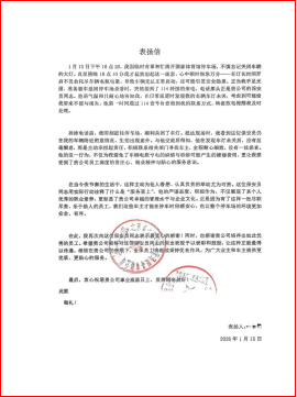 日前,我公司收到一封国家体育馆职工发来的表扬信,对执勤保安员提出了表扬,并向公司表示感谢,虽然只是广大保安员工日常工作中经常遇到的“小事”,但由于执勤保安员的认真负责,用心用情,使客户职工深受感动,细微之处见真情,正是因为广大保安员工立足本职,爱岗敬业,热情服务,在执勤中及时发现并消除潜在的安全隐患,才守护了客户单位和群众的生命财产安全,用忠诚和担当铸造了一流的协平保安品牌。现将该感谢信予以转发,希望广大保安员工能从中受到启发。